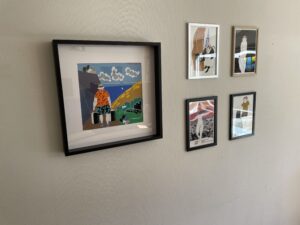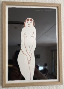 Aan de muur hing een flink aantal tekeningen voor een billijke prijs. We kozen drie mooie.