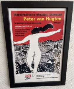 De galeriehouder, zoon van van Hugten, vertelde ons dat hij thuis nog een flinke hoeveelheid prenten had staan. Dit naar aanleiding van onze vraag: is het origineel van de tekening die bij ons thuis aan de muur hangt (ik vertelde maar niet dat het op de wc was) ook te koop? Als we hem een foto van de prent zouden sturen zou hij kijken of dit zo was.